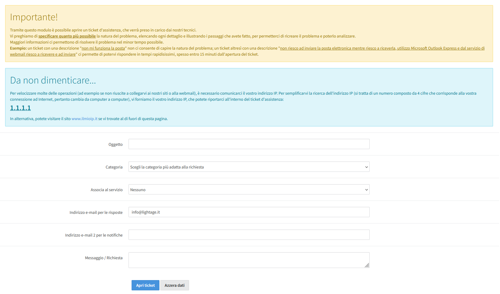 Compila il modulo in tutte le sue parti, descrivendo con quanti più dettagli possibile la natura della richiesta, e premi sul tasto “Apri ticket”.